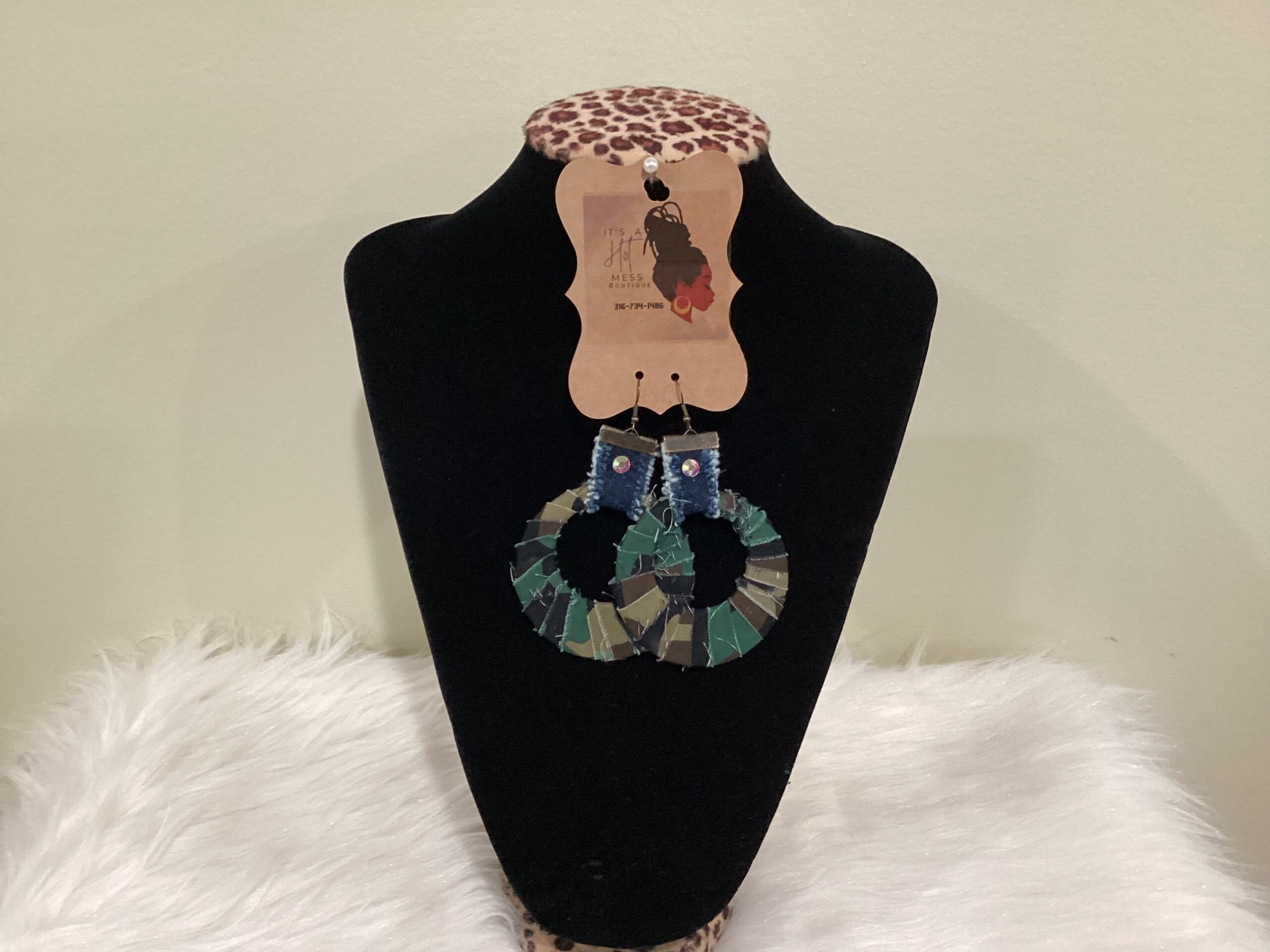 Camouflage and Denim round Earrings