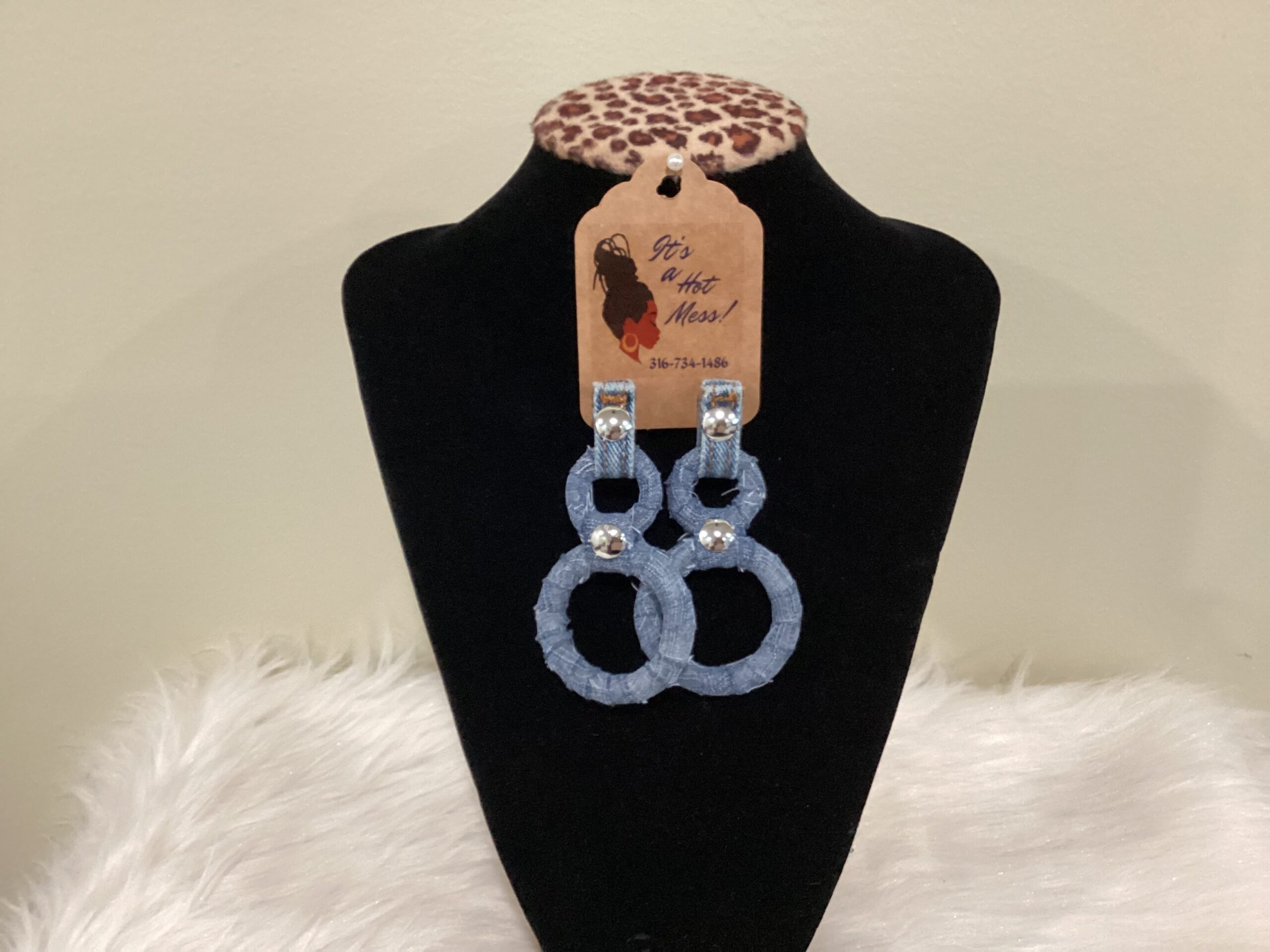 Double ring Denim 3 inches Earrings/Silver tabs