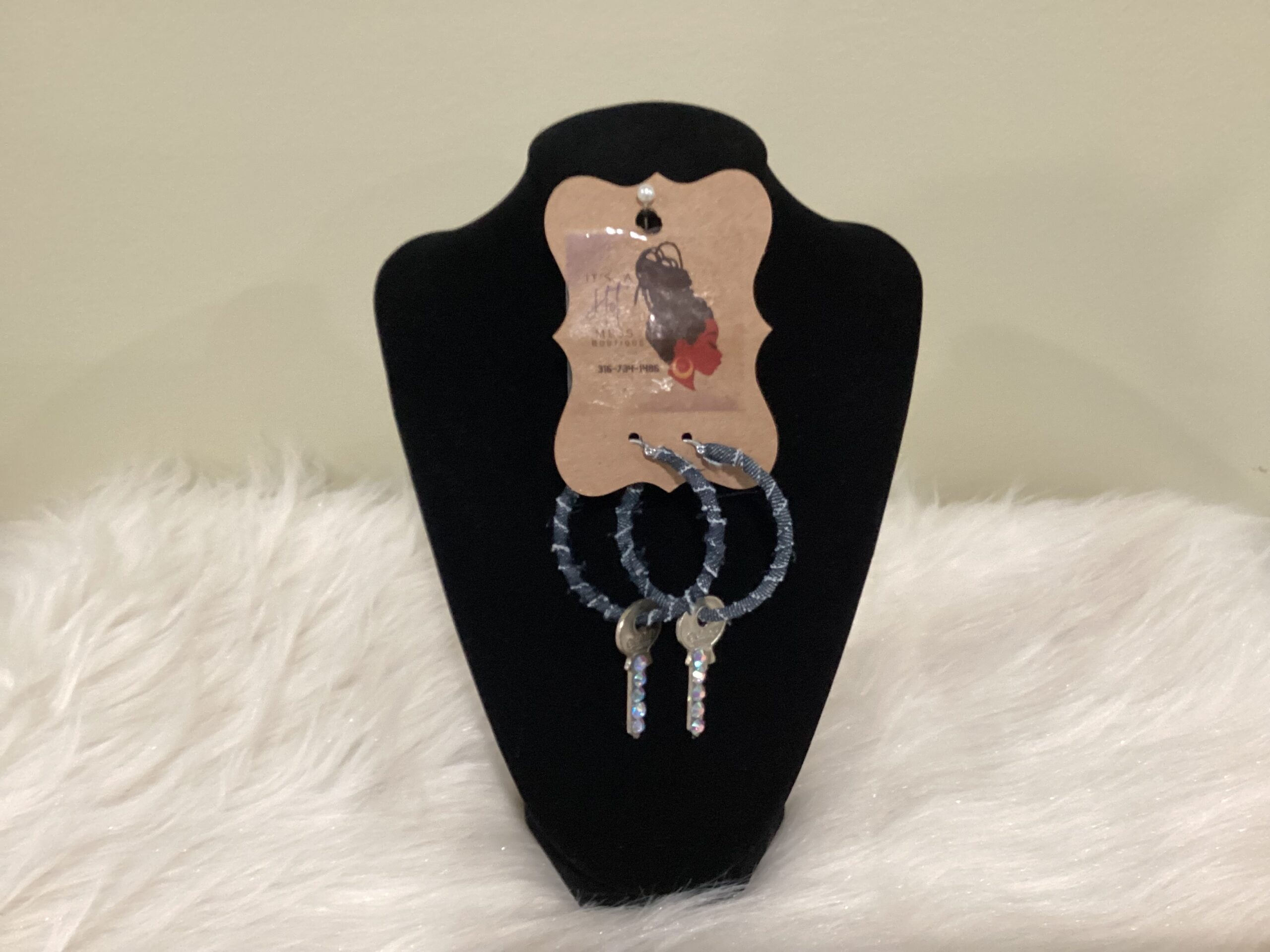 Two inch hoop earrings/charm antique keys