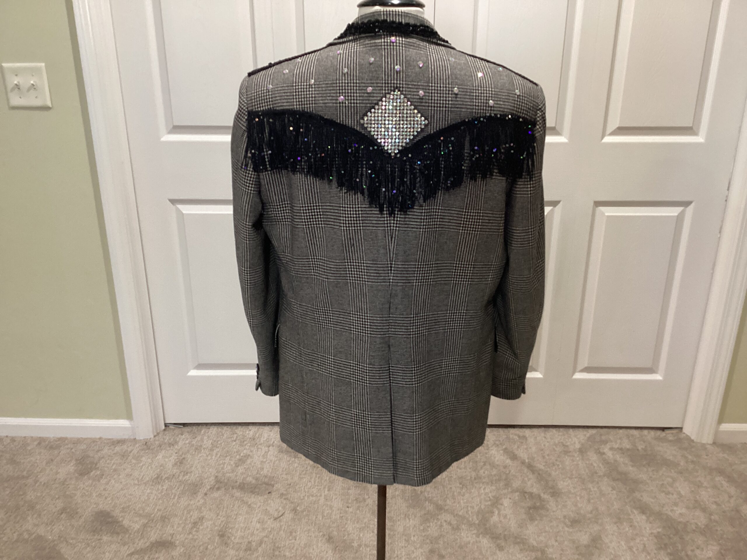 Men’s jacket black and white trimmed fringe and rhinestones size 36 comfortable to an extra extra large jacket (Back)